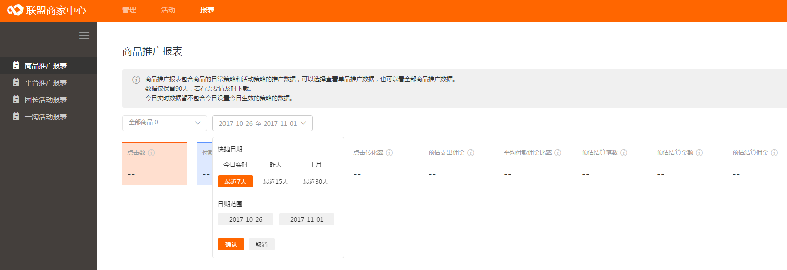 看报表的时候可以选择特定时间段内的数据,包括商品的实时数据,日常策略和活动策略的推广总和,也可以根据商品标题/ID,选择时间范围查看商品对应数据,那么我们在即将到来的双十一大促期间查看数据也会非常的方便和及时,我们自己也能很迅速的去针对数据对商品进行调整。