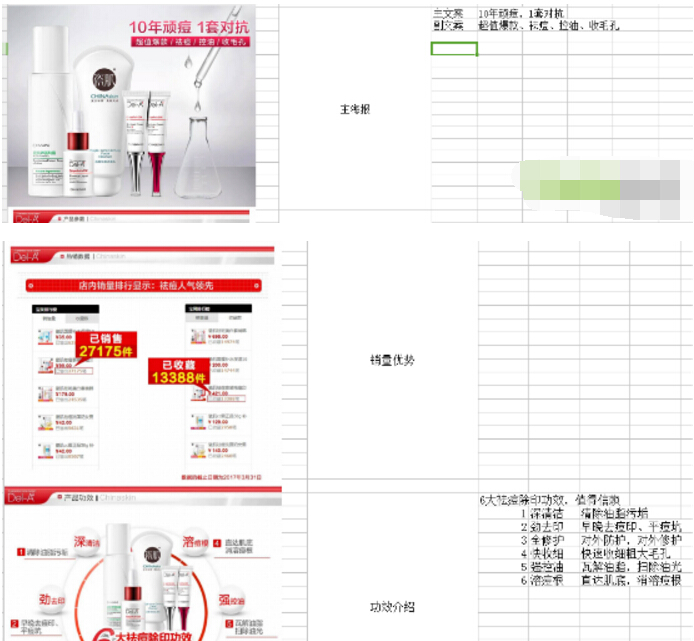 类似于这种表格形式,对竞品宝贝的详情页进行深度拆解,包括详情框架和文案。